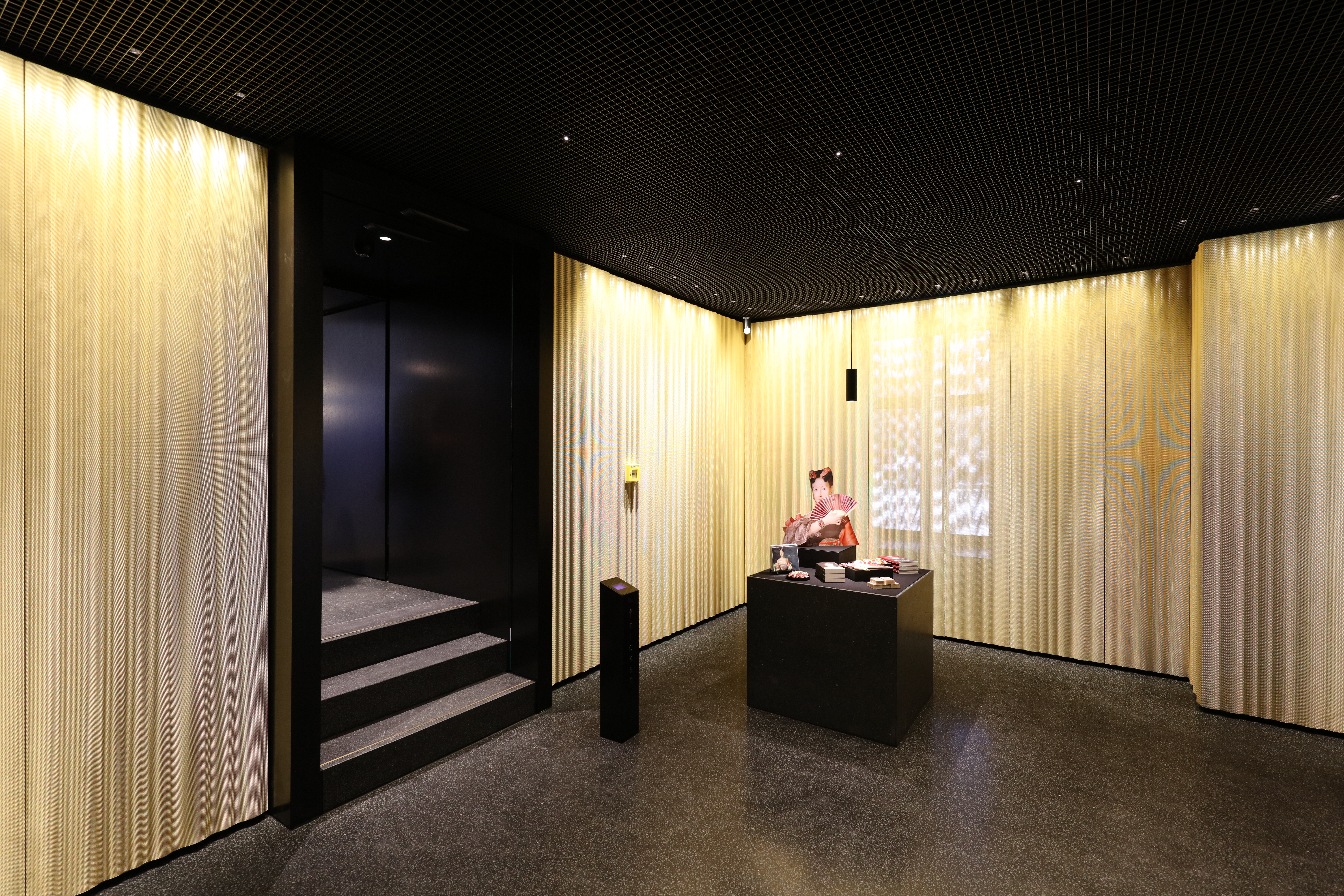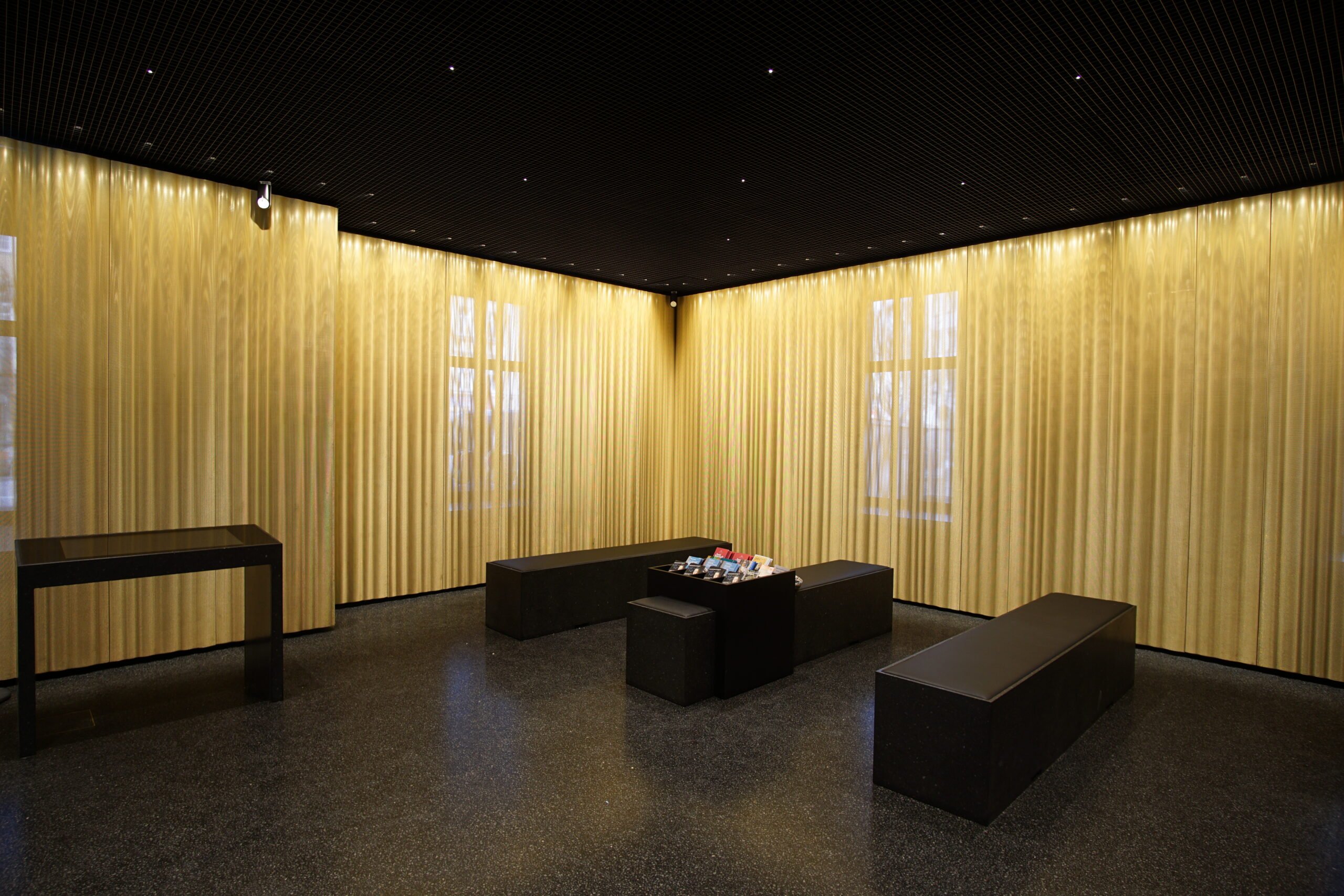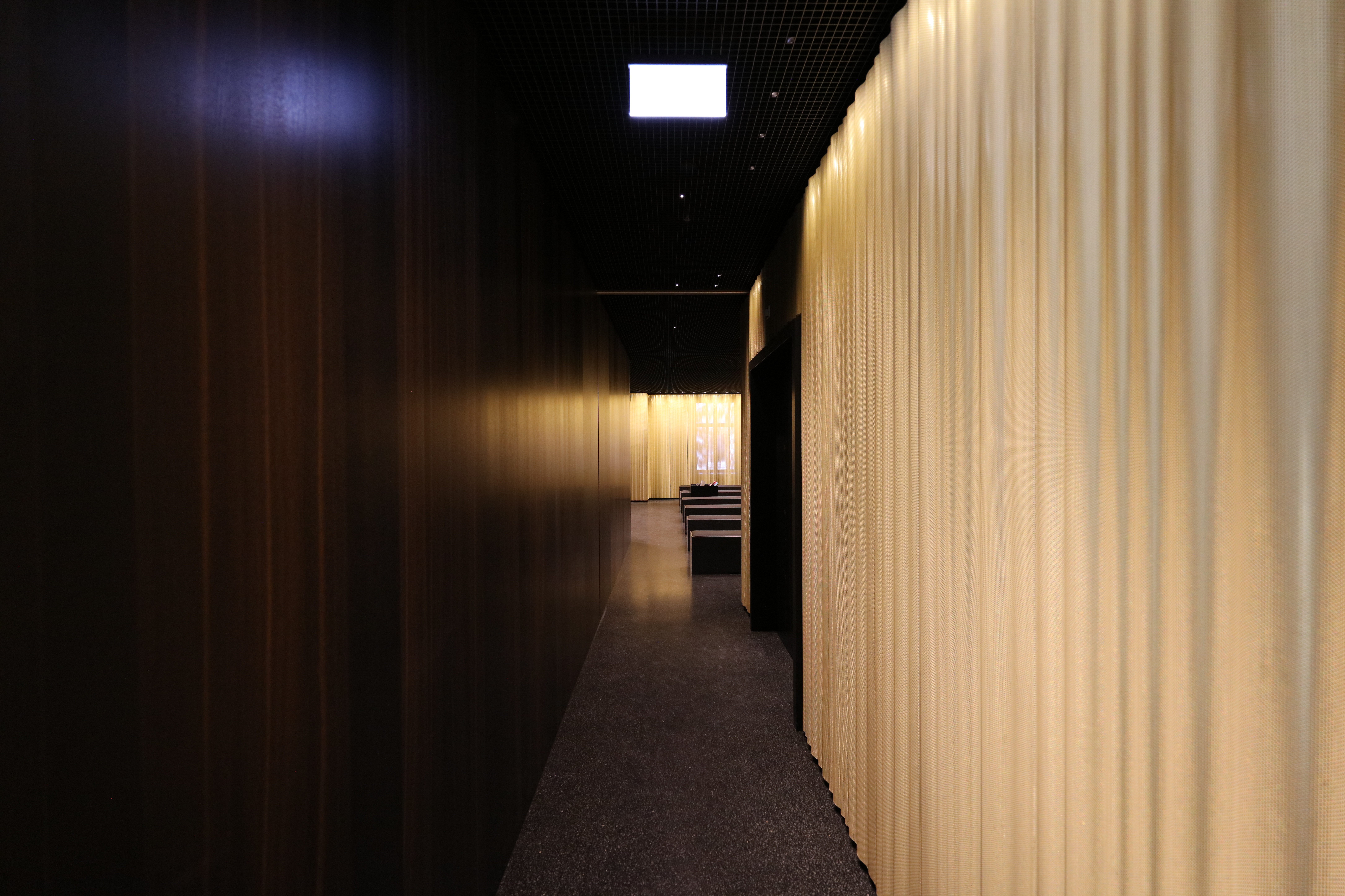 Entering the lower level from Opernstrasse, visitors are greeted by the golden wall cladding of 3D-formed expanded metal. More than 200 square meters of double-layered brass were 3D formed and then laser-cut. The special feature of this project is the brass material used. The main challenge was the handling of this special raw material and the necessary tolerance accuracy in the further processing of the 3D elements. Thanks to its flexible and customizable dimensions, the 3D panel Water Wave College was ideally suited to meet the high demands of a historic renovation.