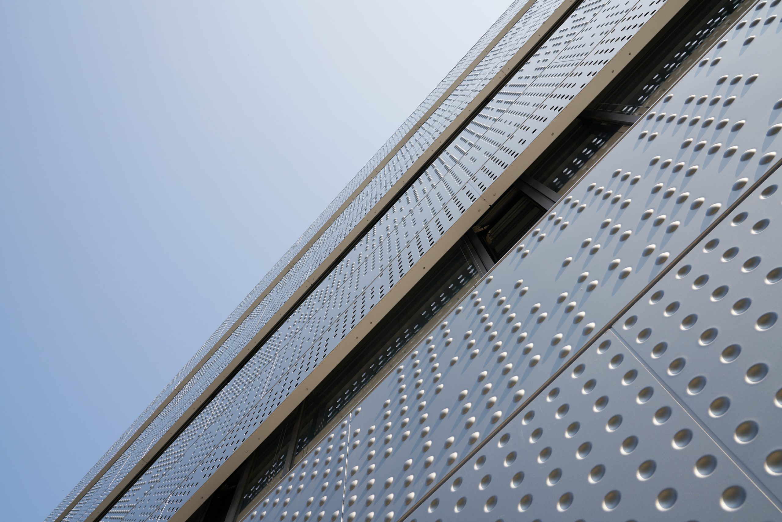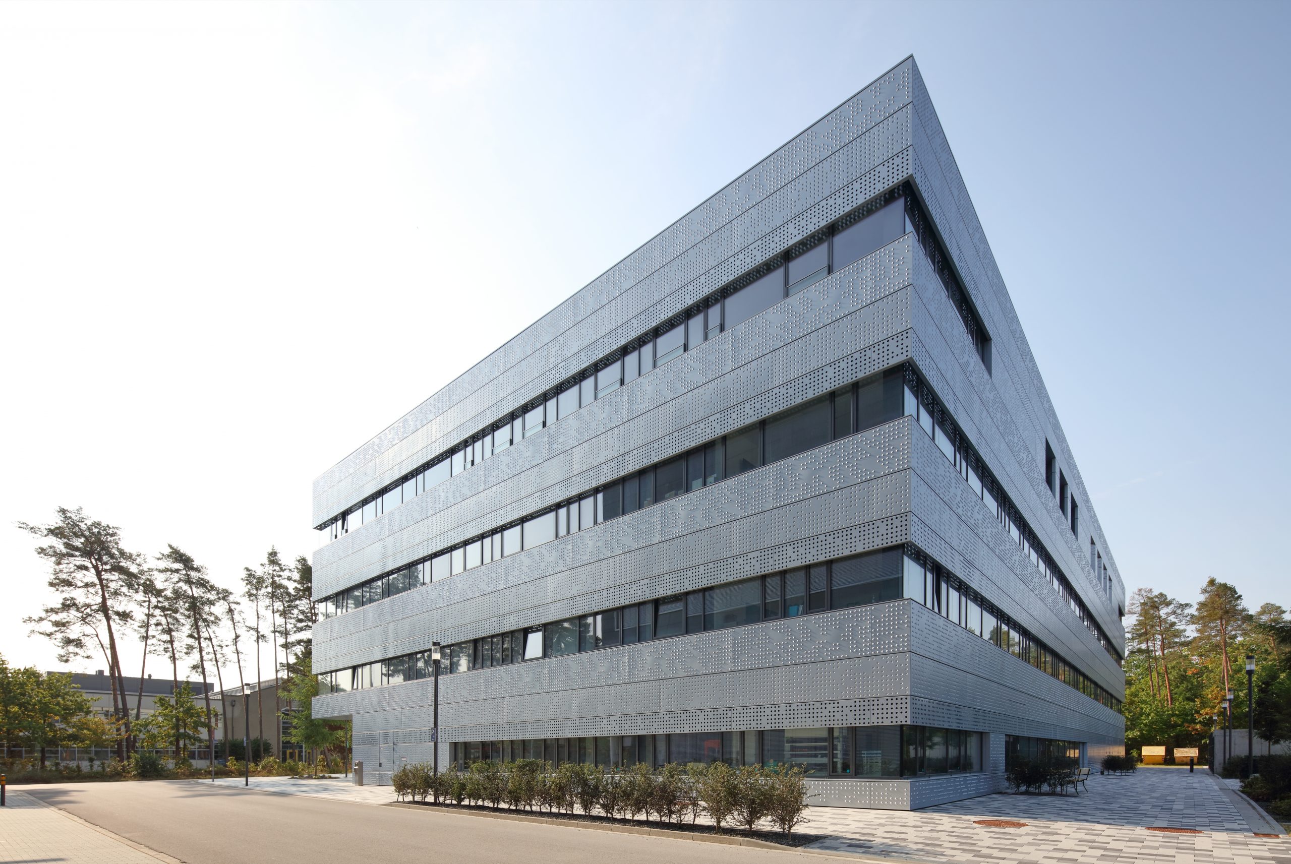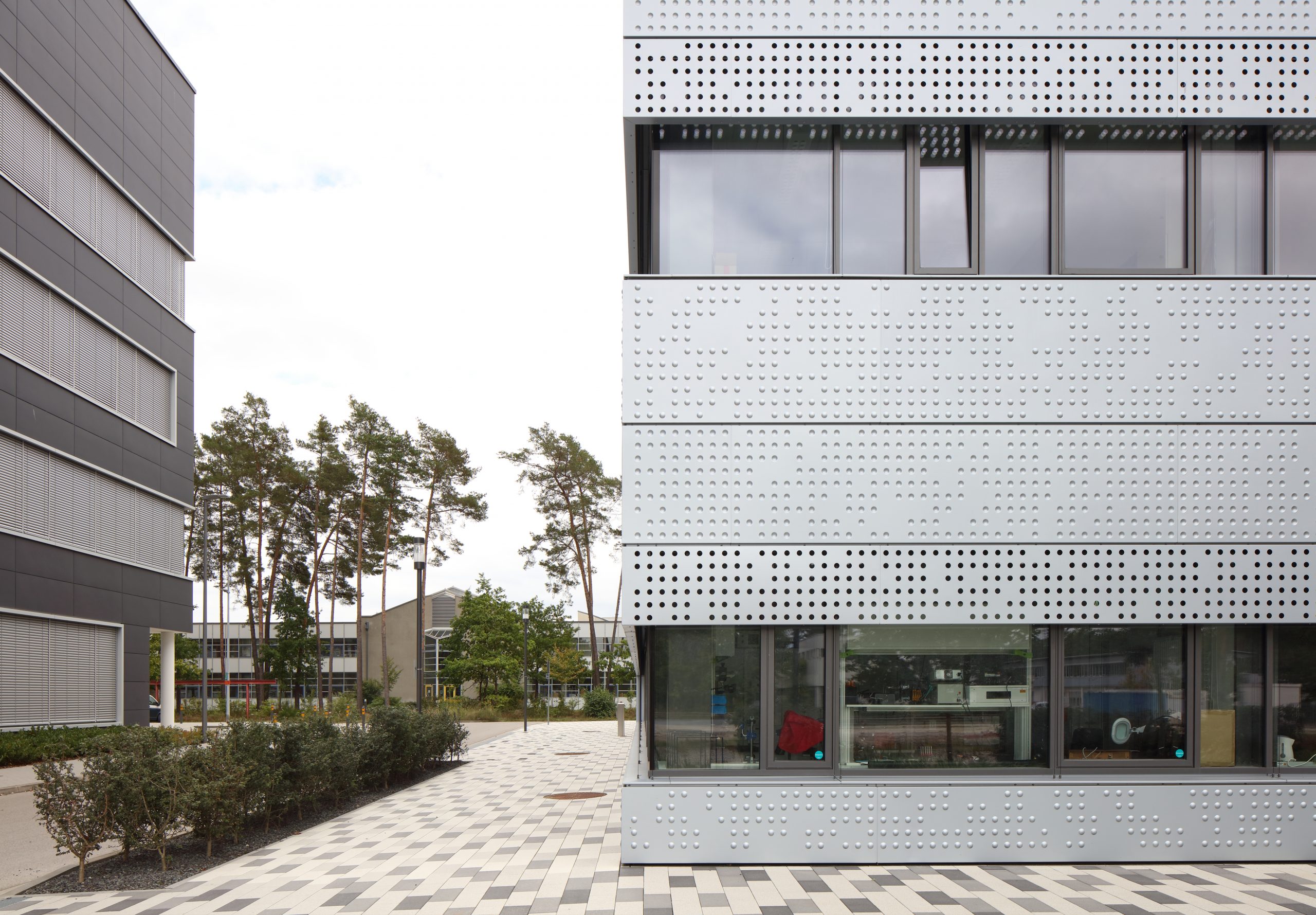 The new branch office of the Research Center Juelich in cooperation with the Friedrich-Alexander-University (FAU) in Nuremberg-Erlangen and the Helmholtz-Zentrum Berlin (HZB) impresses with an extraordinary aluminum facade with alternating 3D elevations and 3D depressions.
