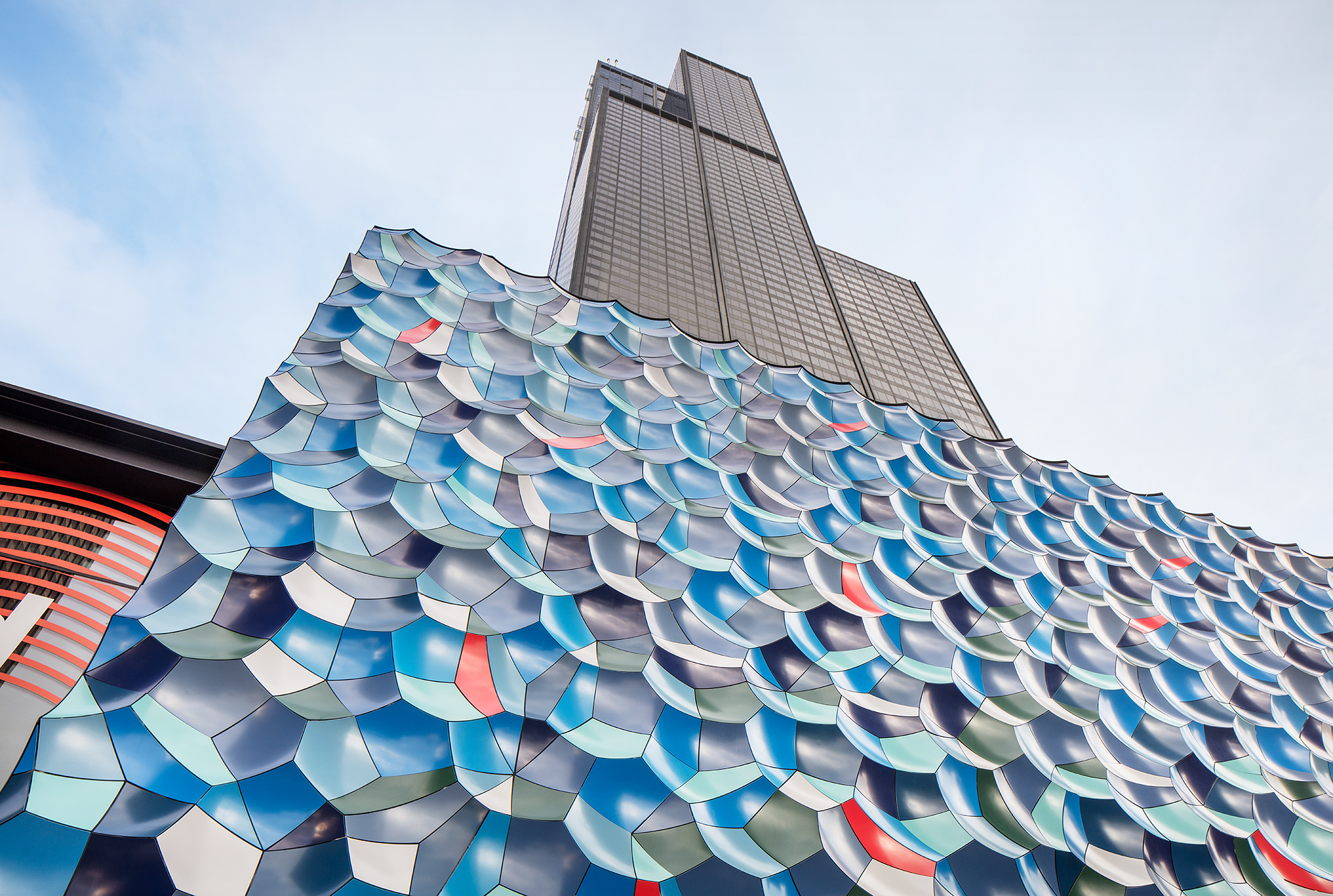 Fielitz 3D platte Sonderanfertigung einzelne pulverbeschichtete Kacheln Atmospheric wave wall in Chicago