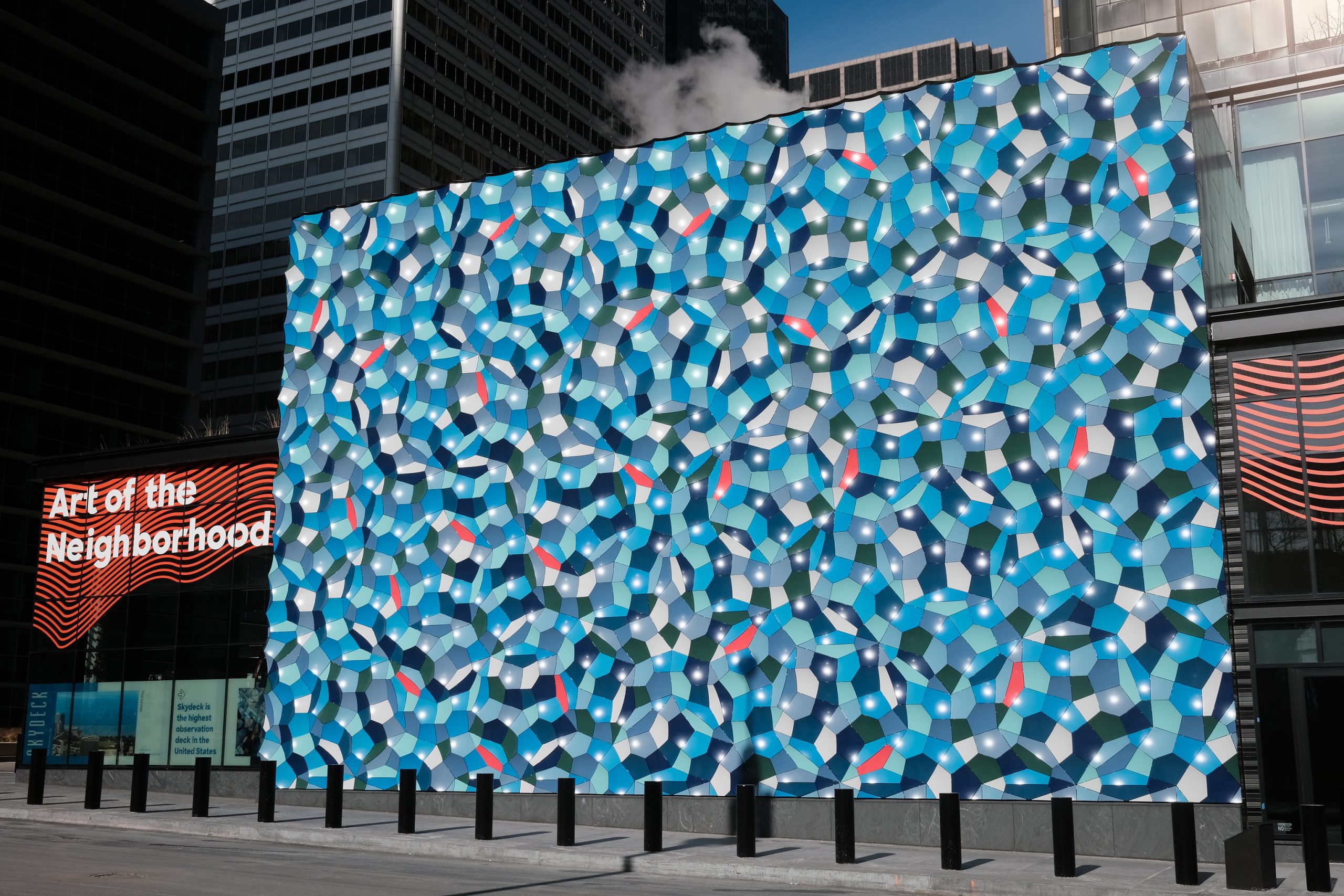 Fielitz 3D platte Sonderanfertigung, einzelne pulverbeschichtete Kacheln. Atmospheric wave wall in Chicago