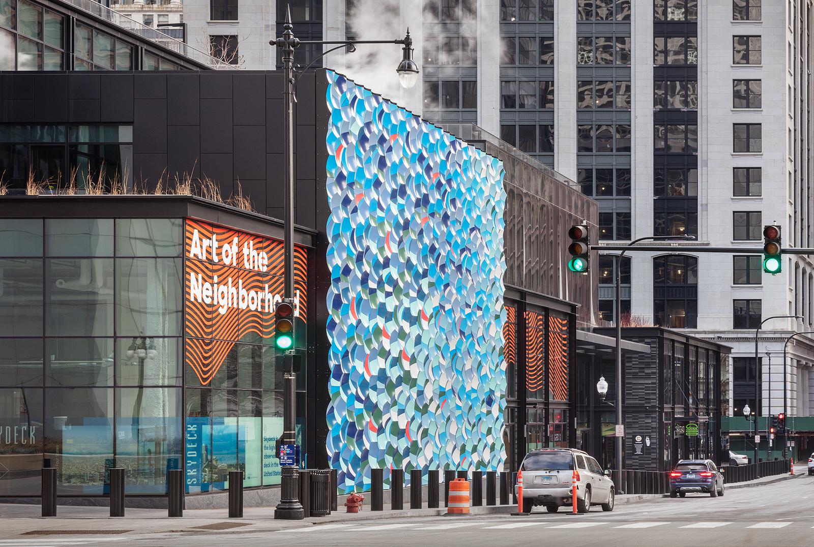 Fielitz 3D platte Sonderanfertigung, einzelne pulverbeschichtete Kacheln. Atmospheric wave wall in Chicago